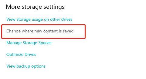 Step4: または、「新しいコンテンツの保存先を変更する」を選択すると、ファイルのデフォルトの保存場所を変更できます。